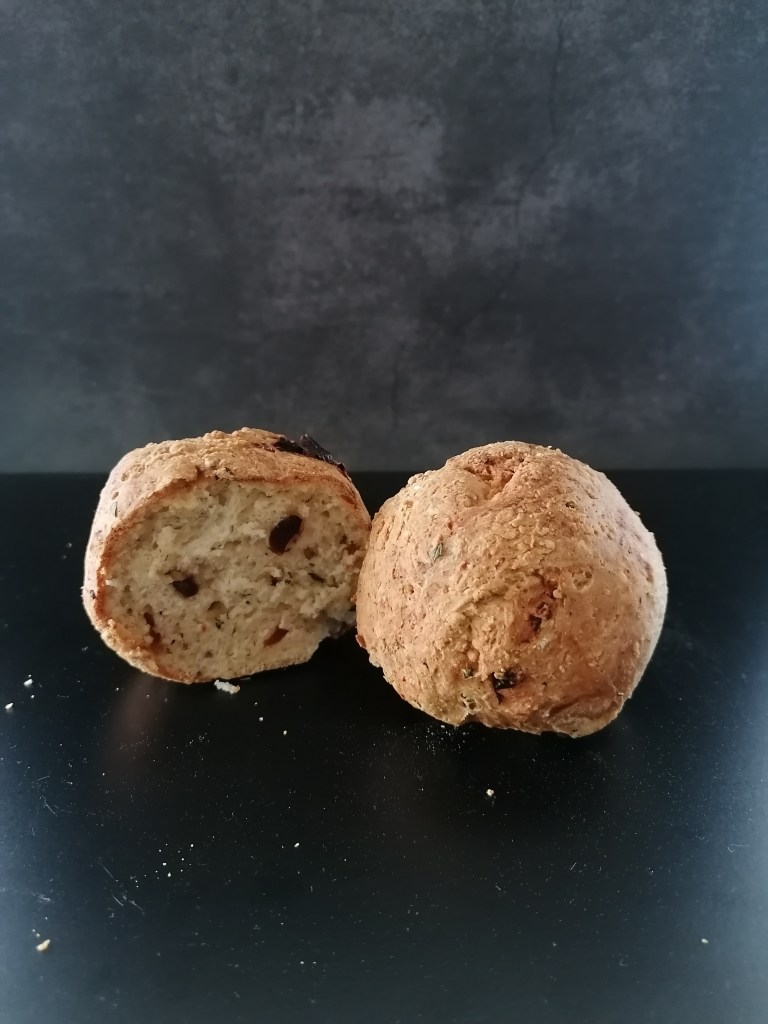 Frische Kräuter, waschen, trocknen und fein hacken. Getrocknete Tomaten & Oliven klein schneiden.