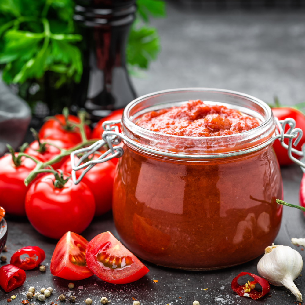 Die Salsa noch heiß in sterilisierte Gläser abfüllen und sofort verschließen.