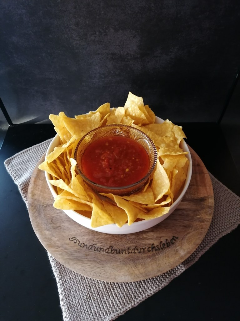 Am besten dazu eignen sich relativ flache Schraubgläser mit einer großen Öffnung. Somit kannst du die Salsa in einem Wasserbad leicht erwärmen und gleich direkt daraus dippen.